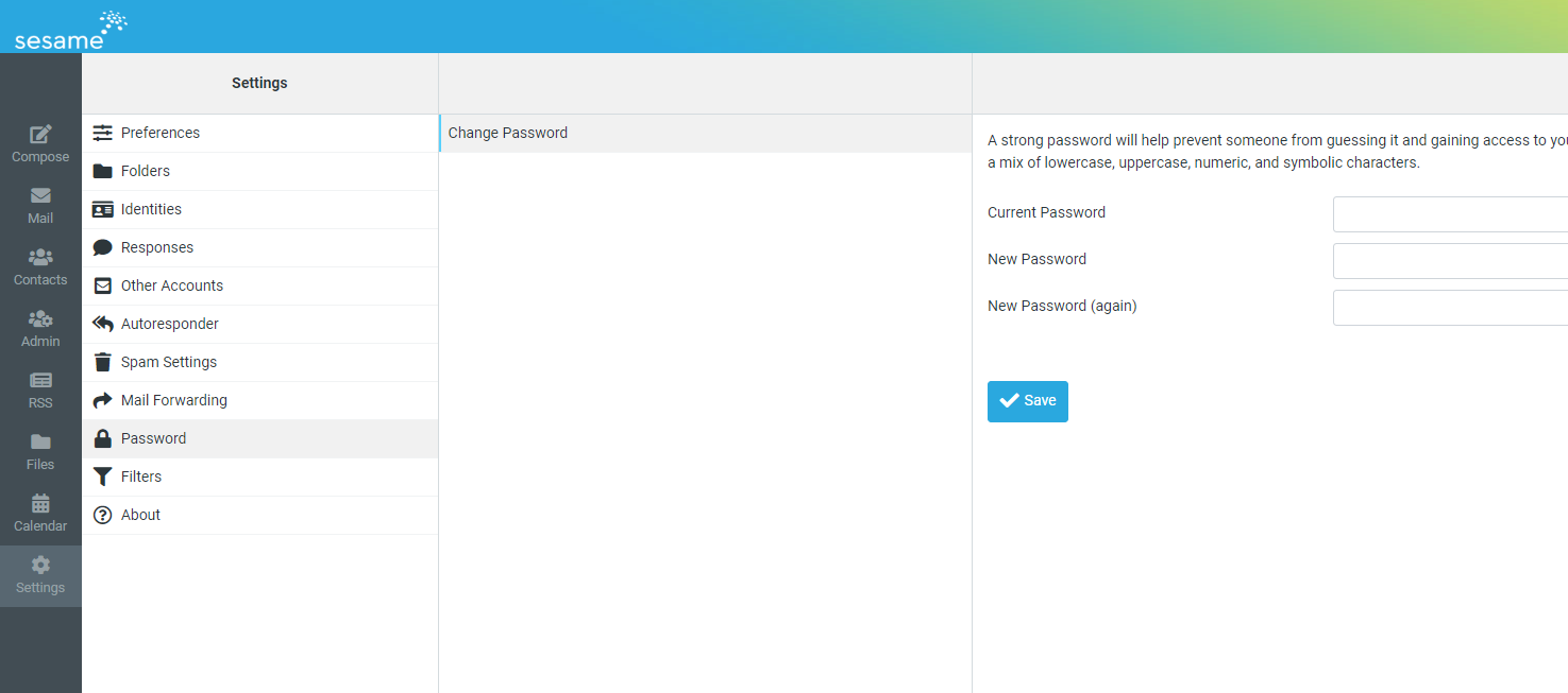 - Log into your email account with your current password at https://www.sesamewebmail.com http://mail.yourdomain.com.